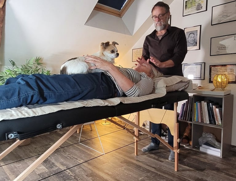 Un accompagnement énergétique pour relâcher les tensions, calmer le mental et favoriser un sommeil réparateur, en intégrant des pratiques de méditation et de respiration profonde qui enrichissent l'expérience.